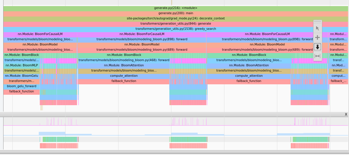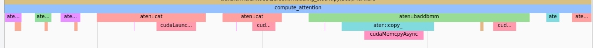 注意力层占用了很多时间,注意这是一个CPU视图,所以条形很长并不意味着核函数执行时间很长,它只意味着 CPU 正在等待上一步的 GPU 结果。