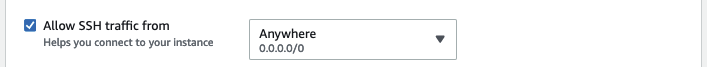 下一步,要确保该实例允许接受 ssh 传输。为简单起见,我并未限制源地址,但你绝对应该在你的帐户中设置一下,以防止被恶意攻击。