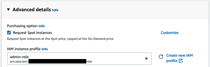 然后,我要求 EC2 将我的实例配置为 Spot 实例,这可以帮我降低每小时使用成本 (非 Spot 实例每小时要 13.11 美元)。