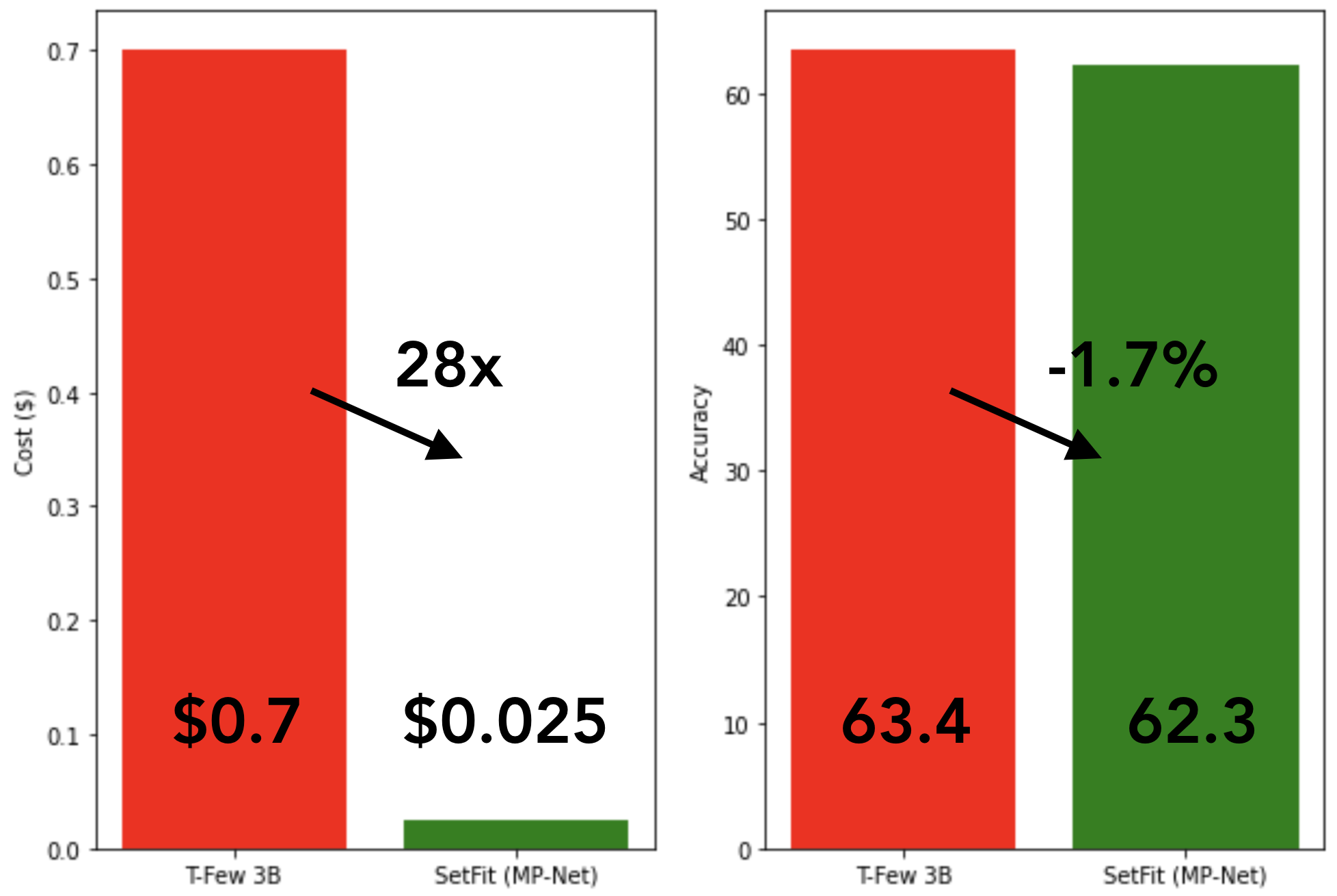 🏎 快速训练: SetFit 不需要使用像 T0 或 GPT-3 这样的大规模语言模型就能达到高准确率。因此,典型情况下,它的训练和推理会快一个数量级或以上。